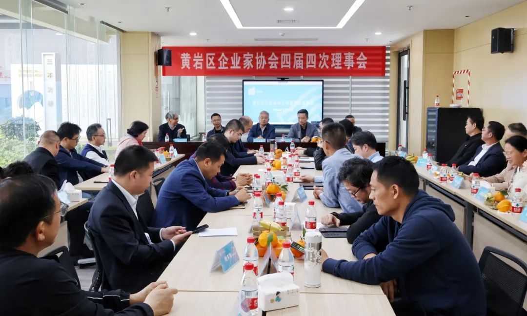 黄岩区企业家协会四届四次理事会4月12日下午在位于新前街道双丰村的黄岩中医院新院区召开,三十多位理事会成员出席了本次会议。黄岩区政协党组副书记副主席潘禹斌应邀参加会议并讲话。区经信科技局局长徐荣信,区商务局局长潘月升、区税务局局长陈勇生,以及发改、社保、市场监管、国土资源、生态环保、应急管理等区级机关有关部门的负责人应邀参加了会议。