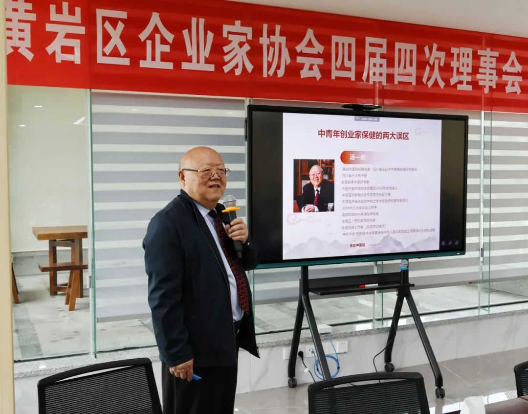 会议开始之前,邀请到了四川省乐山市中医医院主任中医师汤一新,作了一个专题的健康讲座。汤一新,是四川省十大名中医,全国名老中医药专家,成都中医药大学中医师承博导,全国五一劳动奖章获得者,“全国先进工作者”(全国劳动模范),中共中央、国务院、中央军委庆祝中华人民共和国成立70周年纪念章获颁者。他还兼任中国医药教育协会专家委员会副主委,俞梦孙院士人民健康系统工程副主委,四川省老年医学学会副会长,乐山市中医药学会名誉会长等职。